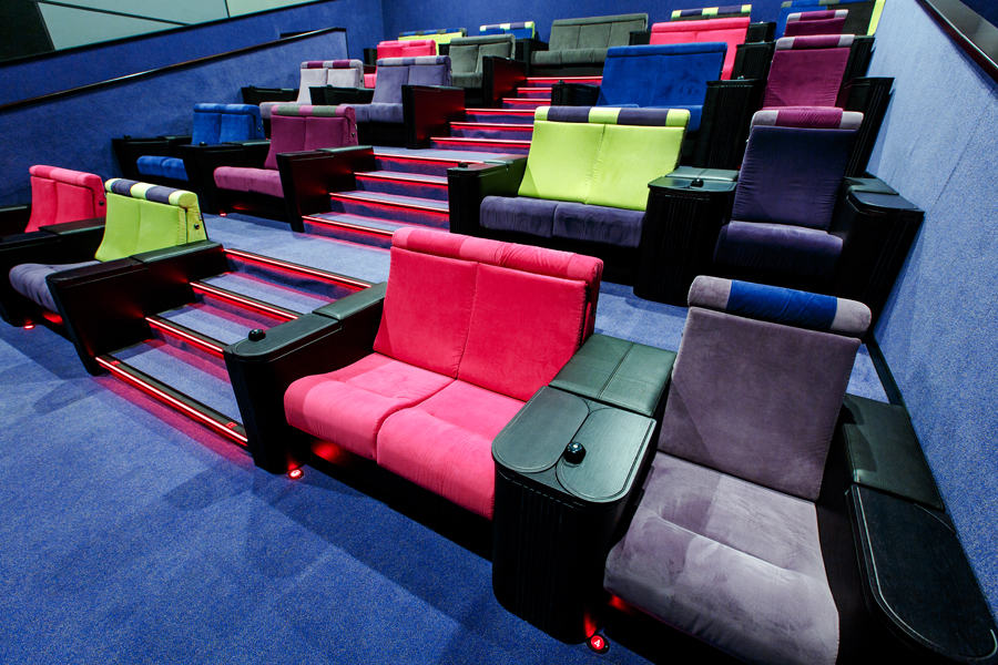 В залах №1 и №2 есть выдвижные столики, за которыми можно удобно расположиться вместе с едой и напитками из бара. В каждом зале размещены серебряные экраны.